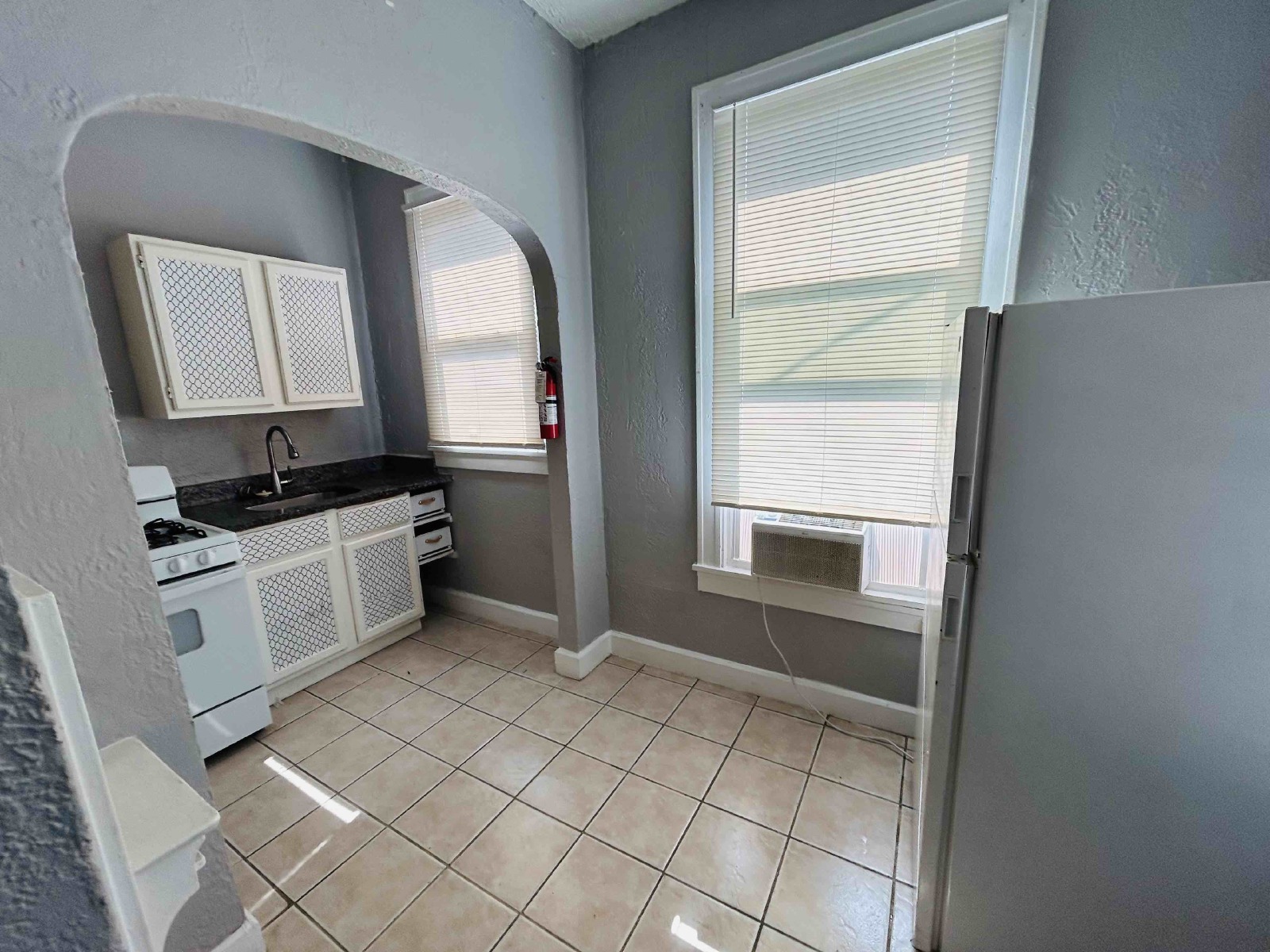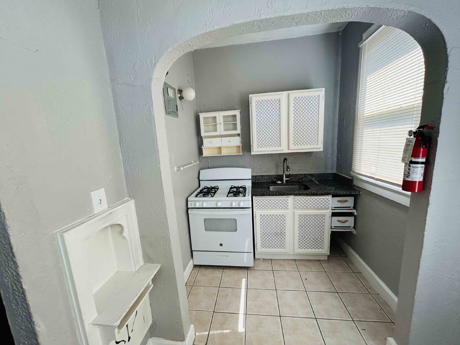 This studio is located in a semi-historic building with high ceilings and dark wood floors, both bringing in true vintage charm. The bathroom sports gorgeous ceramic tile in shower/bath combo, and the kitchen's linoleum flooring makes for easy maintenance and cleaning. The kitchen features ample cabinet space, a conventional oven, and a refrigerator. There is ample natural light coming into the apartment with additional sconces throughout. Please note that SAWS and CPS will both be set up in the resident's name.