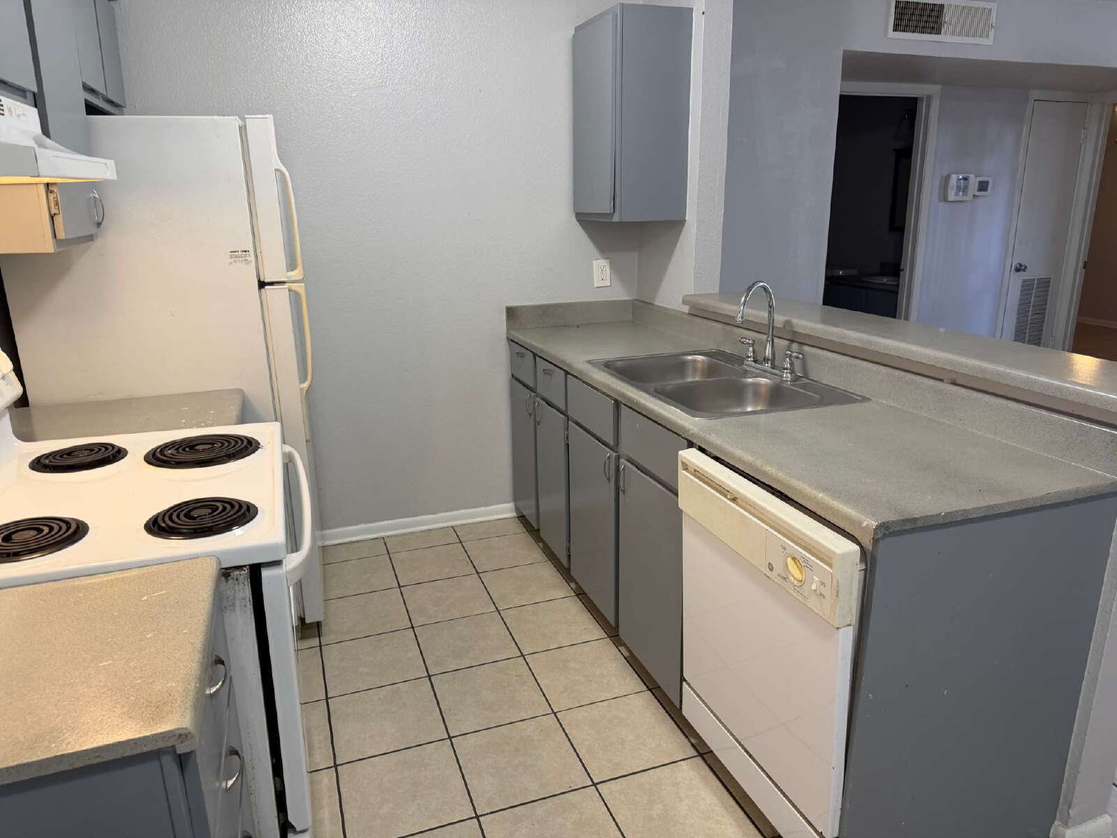 This apartment is a 2 bed/1 bath with tile floors all through out. The kitchen shares a galley window with the living area. The kitchen also features a dishwasher, oven, and refrigerator, nestled between the cabinets that create ample storage space. The bedrooms are spacious and located just down the hall from the central living area. Give us a call to learn more about this property and to schedule a showing!